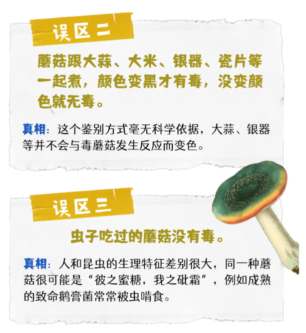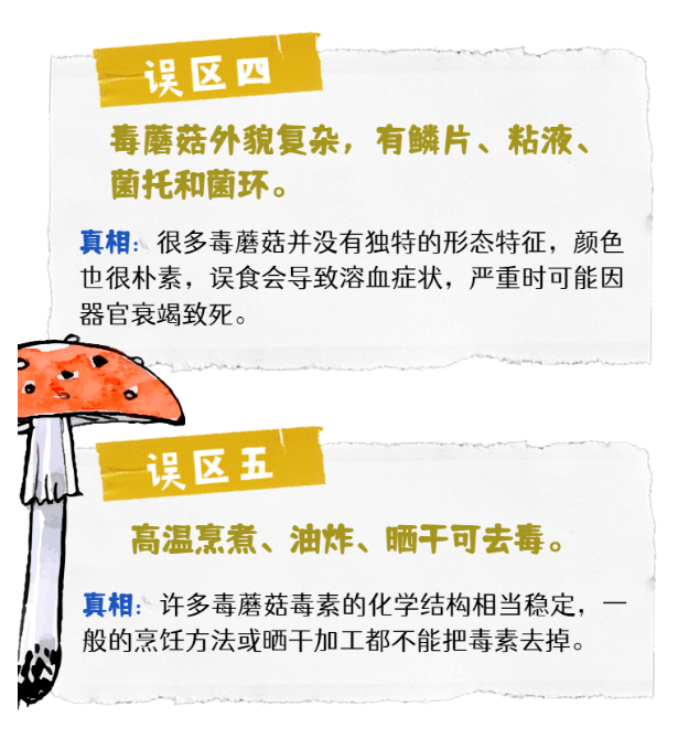 而且无毒的蘑菇,时常会与有毒的蘑菇混生,外观相似,极易误采误食,导致食物中毒